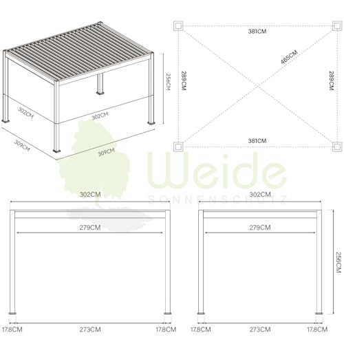 ✔️ WETTERBESTÄNDIGES UND DAUERHAFTES DESIGN – Die robusten Aluminiumpfosten, -träger und -lamellen bieten hohen Schutz vor verschiedenen Witterungsbedingungen, während ein integriertes Wasserabflusssystem Regen effizient ableitet.