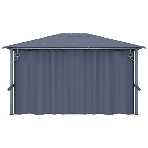 Der Pavillon mit Vorhängen 400×300 cm Anthrazit Aluminium ist ein stilvoller und funktionaler Sonnenschutz für Outdoor-Events. Mit seinem klassischen Design und der anthrazitfarbenen Optik fügt er sich geschmackvoll in jede Umgebung ein. Der Rahmen besteht aus einer robusten Kombination von Aluminium und Stahl, die nicht nunmehr rostbeständig, sondern auch äußerst belastbar ist. Das Dach aus Oxford-Stoff mit PA-Beschichtung bietet zuverlässigen Abschirmung vor blendendem Licht und schädlichen UV-Strahlen. Der Pavillon wird mit 4 Seitenvorhängen aus Polyester geliefert, die bei Bedarf heruntergelassen werden können, sowie mit Netzfenstern, die Insekten fernhalten und gleichzeitig für eine gute Luftzirkulation sorgen. Die Klettverschlüsse erleichtern die Befestigung der Vorhänge. Mit den mitgelieferten Befestigungsmaterialien kann der Pavillon einfach am Boden verankert werden. Die Maße von 400 x 300 x 270 cm (L x B x H) und eine Traufhöhe von 200 cm bieten ausreichend Platz für gemütliche Zusammenkünfte. Dieser Pavillon ist ideal für Grillpartys, Familienfeiern oder Nachtessen im Freien. Achtung: Der Pavillon sollte nicht bei starkem Wind, Regen, Schneefall oder Sturm verwendet werden. Entdecken Sie jetzt den perfekten Begleiter für Ihre Outdoor-Aktivitäten!