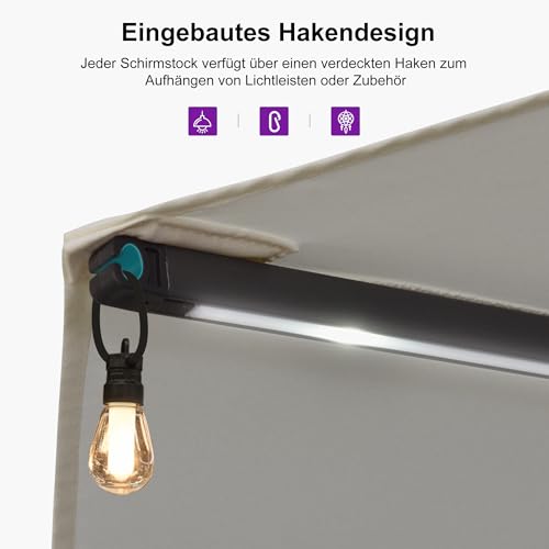 Stabiler Rahmen: Grau pulverbeschichtete Stange und 12 Metallrippen sorgen für Stabilität, Haltbarkeit und Windbeständigkeit