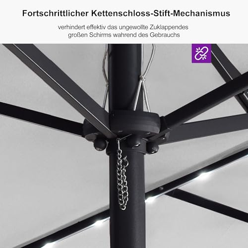 Vielseitig einsetzbar: Der 455 x 270 cm große Terrassenschirm wirft große Schatten voraus, wenn Sie eine Party im Garten gestalten möchten. Es eignet sich vulgo für öffentliche Veranstaltungen und Außenbereiche von Cafés oder Restaurants