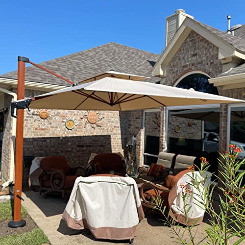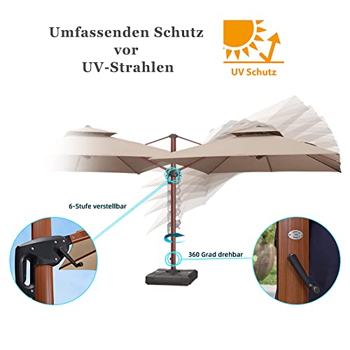 Ampelschirm, Maße: 300 x 400 cm, Form: Rechteckig in Holzoptik mit Doppeldach-Design, hitzeabschirmend, luftdurchlässig, eignen besonderen Stil besitzen