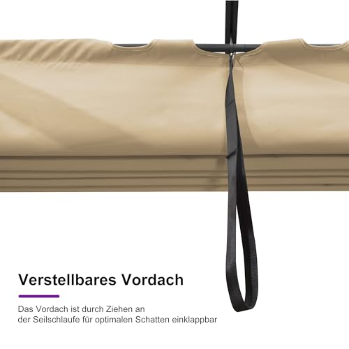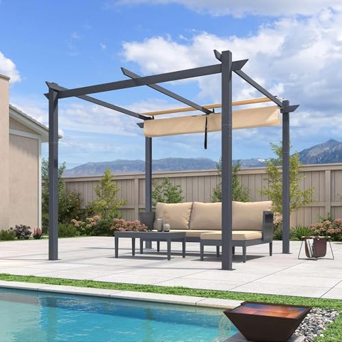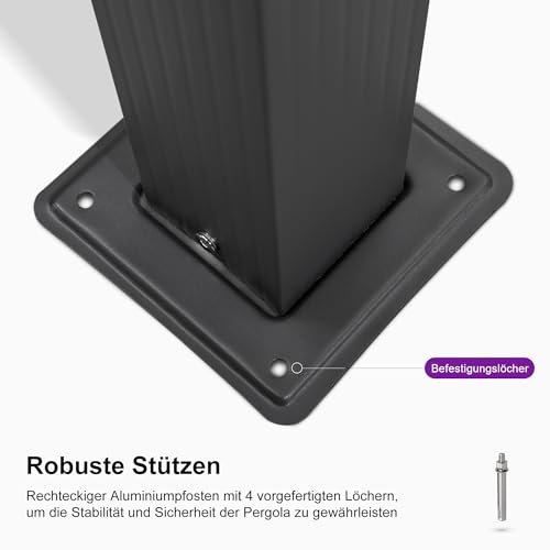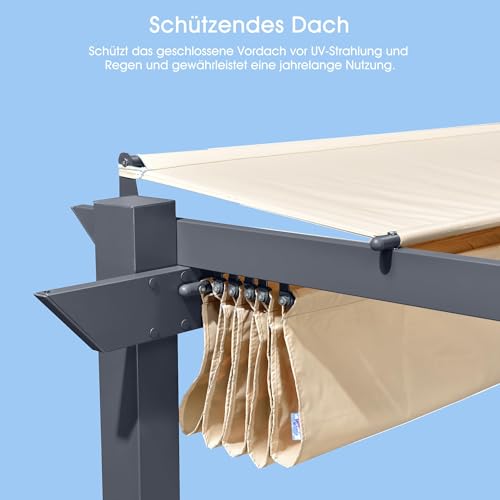 PURPLE LEAF Aluminium Pergola 3 x 3 m, Garten Pavillon Dunkelgrau Rahmen mit Sonnenschutz Überdachung, Pergola Wasserdicht Stabil Winterfest, Beige