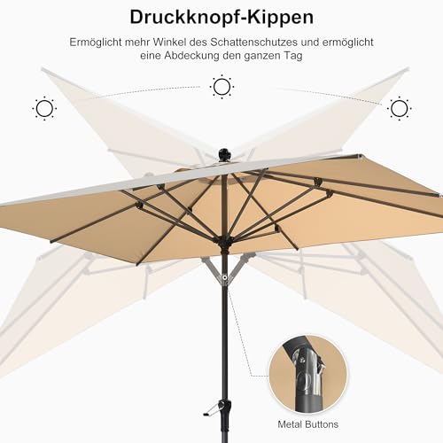 NEIGUNGSFUNKTION – Dank der Lust mit Druckknopf, der den Winkel des Sonnenschirms brauchbar der Position der Sonne einstellt, um sich vor der zutiefst liegenden Sonne zu schützen