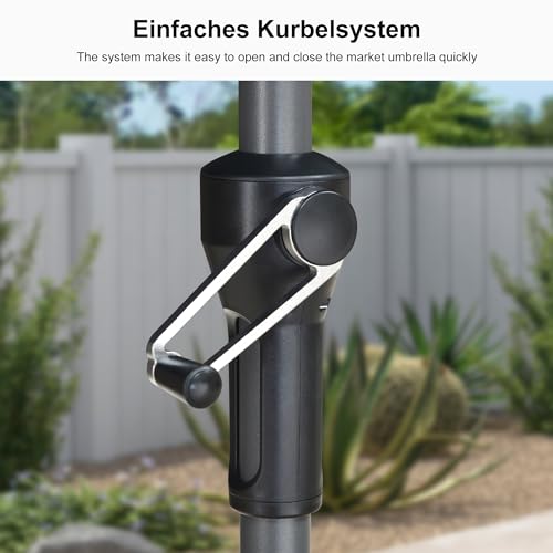 BEQUEME NUTZUNG – Sie öffnen und deduzieren den Gartenschirm die Gesamtheit einfach durch die praktische Kurbelfunktion