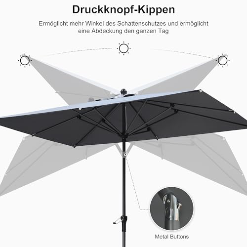 NEIGUNGSFUNKTION – Dank der Verlangen mit Druckknopf, der den Winkel des Sonnenschirms brauchbar der Position der Sonne einstellt, um sich vor der unergründlich liegenden Sonne zu schützen