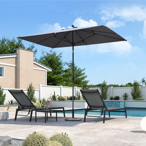 PURPLE LEAF Aluminium Sonnenschirm 270 x 180 cm, Balkonschirm mit Kurbel und neigbar, rechteckig Gartenschirm Marktschirm, Sonnenschutz, für Schwimmbäder, Terrasse, Hellgrau