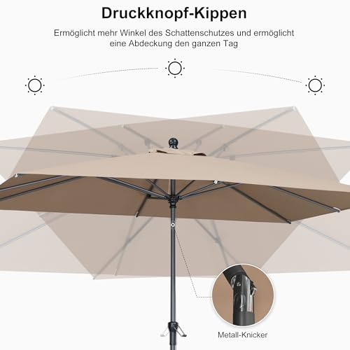 BEQUEME NUTZUNG – Sie öffnen und abstrahieren den Gartenschirm jedweder einfach durch die praktische Kurbelfunktion