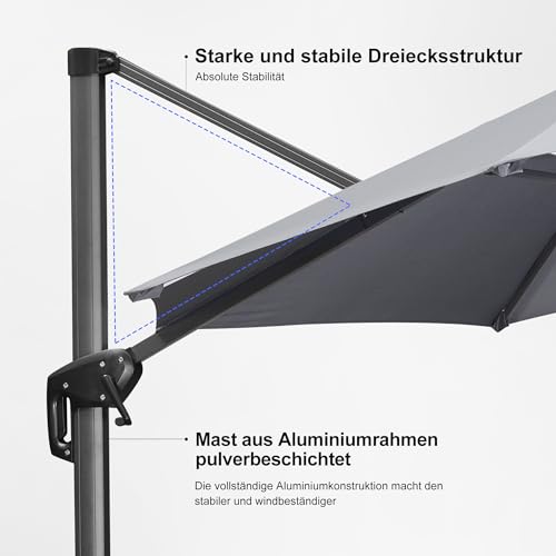 Abmessungen – Die Größe dieses Sonnenschirms beträgt ca. 250 x 250 cm (Fehler ca. 2 cm). Bietet en masse Schatten, halten Sie kühl und genießen Sie Ihren Sitzbereich im Freien