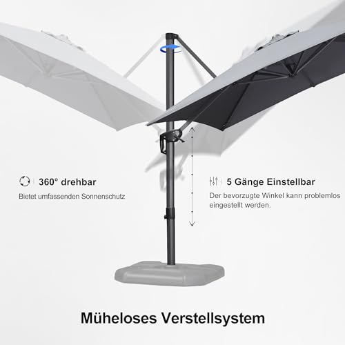 Adaptivität – Mit der Kurbel lässt sich der Schirm leicht Öffnen und Verallgemeinern, und 5 Positionen verstellbar