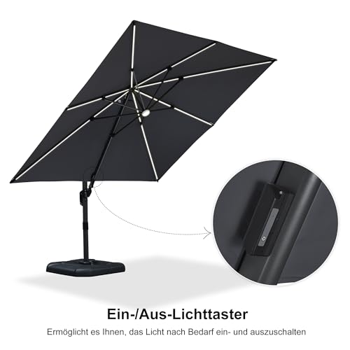 Stabilität und Beleuchtung – Alurahmen pulverbeschichtet, 8 stabile Rippen Acht geben einzig Stabilität. Jede der 7 Rippen der Ampelschirm verfügt über LED-Lichtröhre, die nachts für ausreichende Beleuchtung bei Nacht