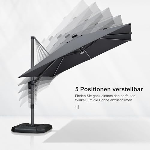 Flexibilität – Der PURPLE LEAF Pendelschirm lässt sich um 360 Abstufung drehen, beidseitig Achsen… schwenken und 5 verschiedene Neigungspositionen lässt und somit optimal dem Sonnenstand aufeinander abgestimmt werden kann