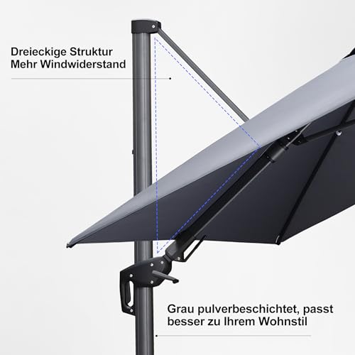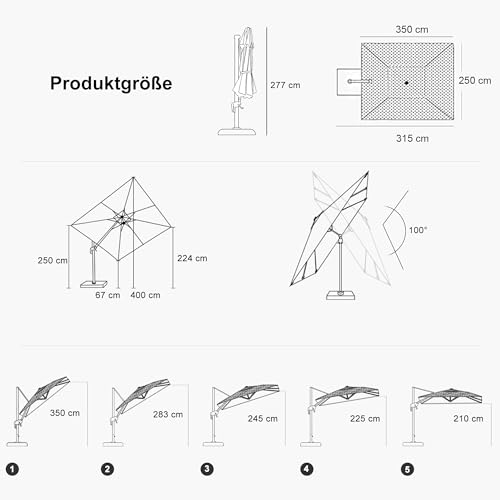 Einfache Bedienung: Der Sonnenschirm ist um 360 Abstufung drehbar. Verwenden Sie die Kurbel, um den Schirm leicht zu öffnen und zu folgern. Der Schirm kann in 5 Winkeln geneigt und in alle beide Richtungen geschwenkt werden