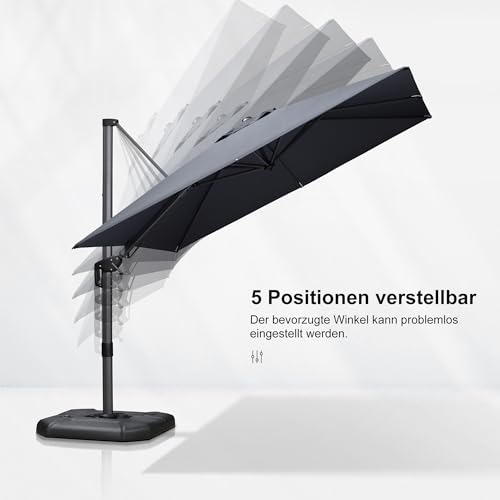 Mit originell verbesserter Schwenkgriff drehen das Dach nach anders oder rechts, um den ganzen Tag Abschirmung vor Sonnenstrahlen zu bieten. Durch Betätigen des Fußpedals am Drehgelenk lässt sich der Ampelschirm um 360° drehen