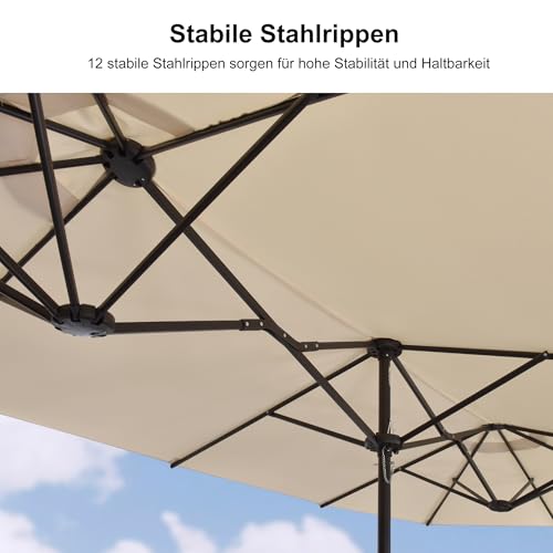 PURPLE LEAF Doppelsonnenschirm 455 x 270 cm, Sonnenschirm Groß, Oval Gartenschirm mit Kurbel, UV Schutz, für Terrasse, Balkon, Café, Beige