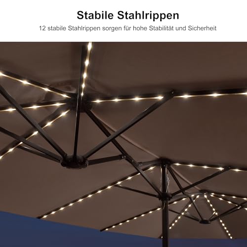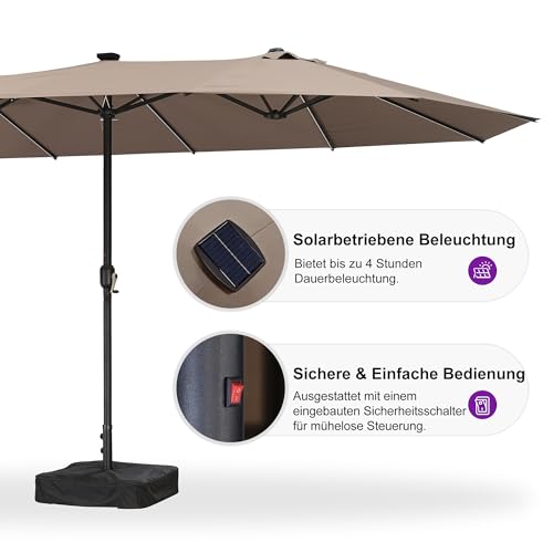 Großer Schattenbereich: Dieser 455 cm große Terrassenschirm mit doppelt großem Design bietet Ihrer Familie und Freunden einen außergewöhnlich großen Schattenbereich. Bedrückt dem Sonnenschirm können Sie eine Reihung von Gartenmöbeln platzieren