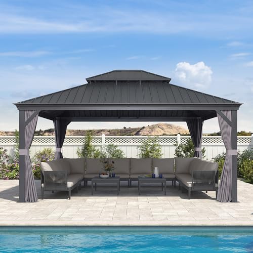 PURPLE LEAF Gartenpavillon 4.25 x 4.85 m Wasserdicht Stabil Winterfest Stahldach Hardtop Pavillon Alu Pavillon mit Moskitonetz und Vorhänge für Carport, Grau