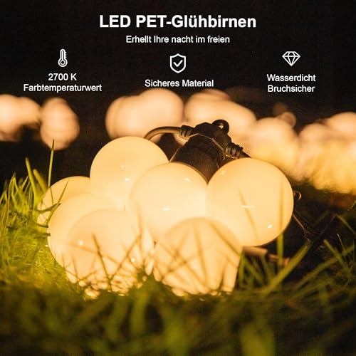 LED-Lichterkette: Die Lebensdauer im Freien beträgt bis zu 30.000 Stunden, mit 48 PET-Niedervolt-Glühenröhren, wasserdicht und sturzsicher. Bietet dauerhafte, stabile Beleuchtung
