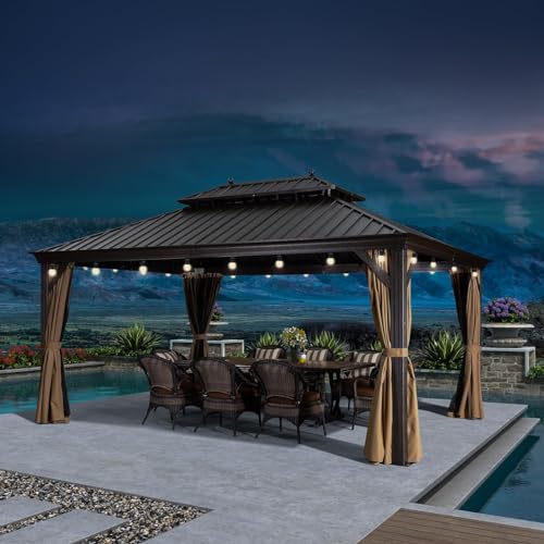 Aluminiumrahmen: Pulverbeschichtet, hat eine dekorative Textur und ist vollständig in die Beschichtung integriert, splittert oder blättert nicht ab und ist sehr langlebig. Der Rahmen stützt die gesamte Struktur fest und hält Windgeschwindigkeiten von bis zu 40 MPH stand