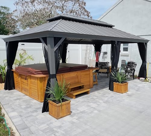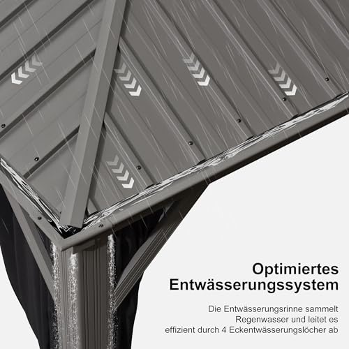 Aluminiumrahmen: Pulverbeschichtet, hat eine dekorative Textur und ist vollständig in die Beschichtung integriert, splittert oder blättert nicht ab und ist sehr langlebig. Der Rahmen stützt die gesamte Struktur fest und hält Windgeschwindigkeiten von bis zu 40 MPH stand