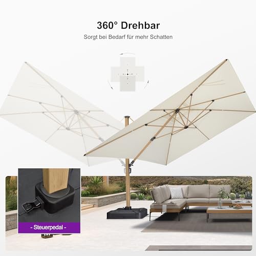 Praktische Version: Kurbelsystem zum Öffnen und Verallgemeinern der Ampelschirm, Verlangen in 6 Positionen verstellbar. Unteres Pedal steuert 360° Drehbar. Je nach Sonneneinstrahlung frei einstellbar, kein Umzug nötig