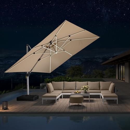 Schirmstoff und Griff: Der Terrassenschirm Stoff ist leer 240 g/㎡ Garngefärbtes Polyester, UPF 50+, wasserdicht, nicht leicht ausgewaschen. Die Kurbel leer Aluminium kann nicht so leicht beschädigt werden