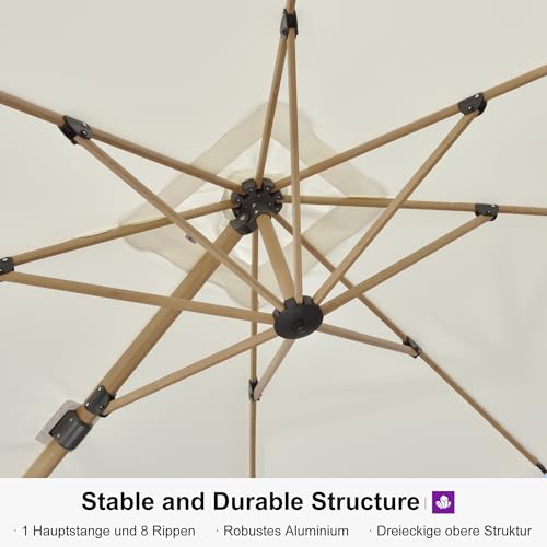 Robustes Gestell: Gartenschirm Stock ist dickes Aluminium pulverbeschichtet; robust und rostfrei. 8 starke Rippen und die Dreiecksstruktur umsorgen isoliert Stabilität