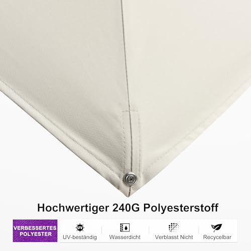 Schirmstoff und Griff: Der Marktschirm Stoff ist aufgebraucht 240 g/㎡ Garngefärbtes Polyester, UV 50+, wasserdicht, nicht leicht ausgewaschen. Die Kurbel aufgebraucht Aluminium kann nicht so leicht beschädigt werden