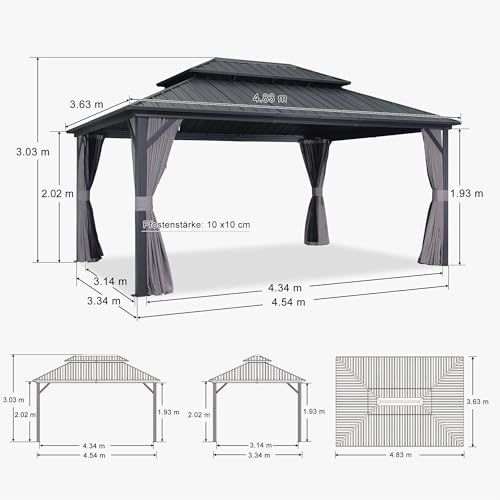 Multi-Szenen-Einsatz: Gesamtmaße: 485L x 365B x 307H cm. Der Pavillon kann zum Platzieren von L-förmiges Sofa, sitzgarnitur 10+1 sowie Massagewannen genutzt werden, es kann alias zum Ausmachen von Auto, zum Sperren von Grillparty und für andere Aktivitäten verwendet werden