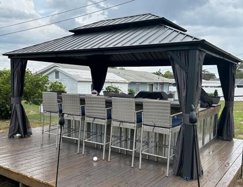 Alu Rahmen: Der Rahmen besteht alle pulverbeschichtetem Aluminium, um Rost und Verblassen zu widerstehen. Die Säulengröße beträgt 10 x 10 cm. Aus Sockel verfügt über vorgebohrte Löcher und kann mit Dehnschrauben am Betonfundament befestigt werden, um die Stabilität des Pavillons zu erhöhen