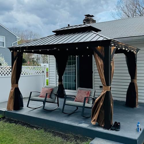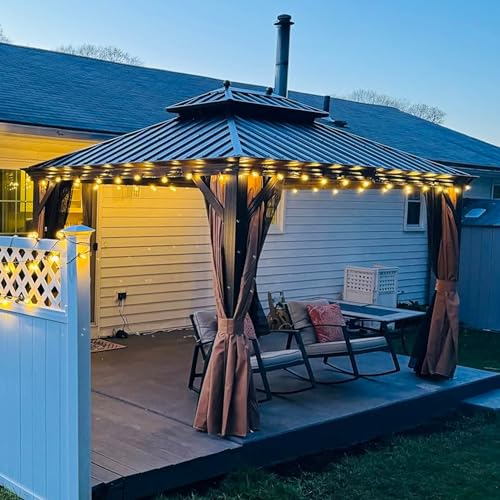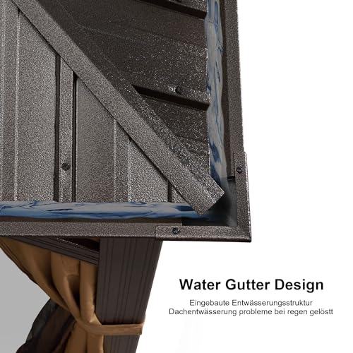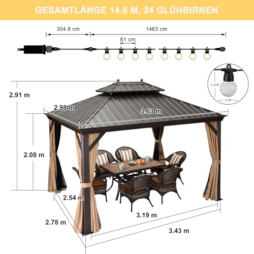 PURPLE LEAF Pavillon 3 x 3.65 m Wasserdicht Stabil Winterfest Gartenpavillon mit Stahldach Hardtop Pavillon mit Seitenteile 14.6 m 24 LED Lichterketten, Bronze