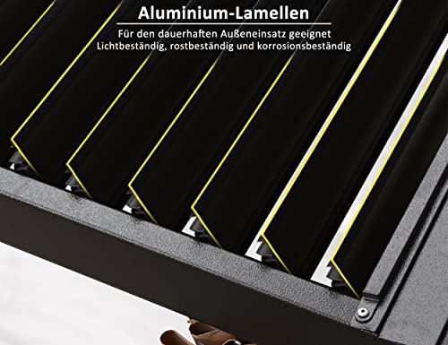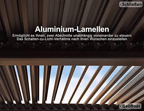 Alu-Lamellen: 2 abgekoppelt voneinander verstellbare Dächer, die sich durch Schütteln des Griffs verstellen lassen, können bis zu 12 ㎡ Schatten spenden, die sich je nach Sonnenstand anpassen lassen.