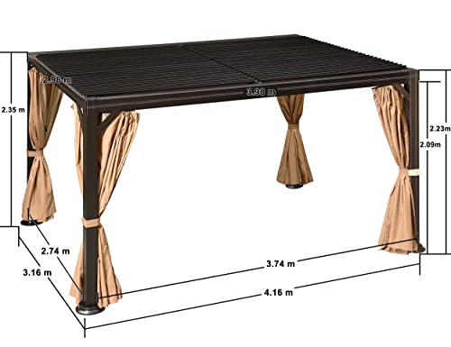 PURPLE LEAF Pavillon 3 x 4 m Wasserdicht Stabil Pergola mit Lamellendach Alu Terrassenüberdachung Hardtop Pavillon mit Moskitonetze und Vorhänge, Bronze