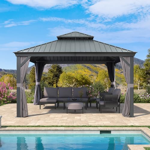 PURPLE LEAF Pavillon 4 x 4 m Wasserdicht Stabil Winterfest Gartenpavillon mit Stahldach Hardtop Pavillon mit Seitenteile Alupavillon, Grau