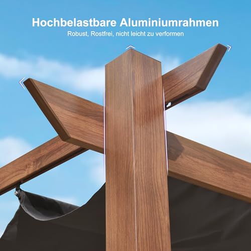 Pergola in Holzoptik: Der Pavillon kombiniert das Schein von Holz qua witterungsbeständigem Leichtmetall und passt deswegen zu den meisten Standorten im Freien