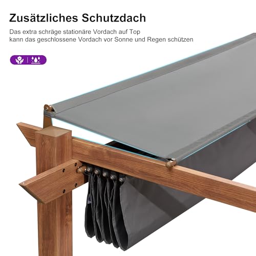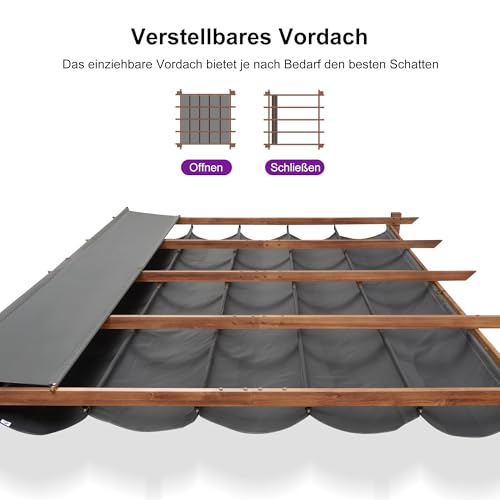 Einziehbares Vordach: Die Gartenpavillons kann je nach Wetterlage in eine Terrassenüberdachung oder eine Sonnenschutz Überdachung umgewandelt werden