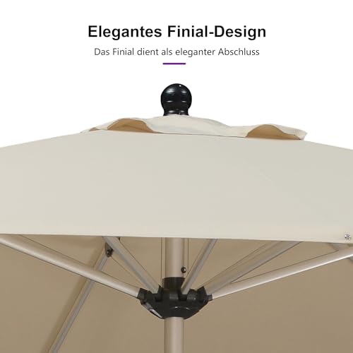 Druckknopf-Kippen: Der Sonnenschirm lässt sich um bis zu 30° in beide Richtungen neigen, Sie können die Sonnenschutzposition des Gartenschirms nach Ihren Bedürfnissen anpassen, Blockiert wirksam das Sonnenlicht