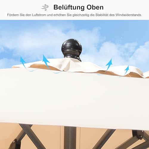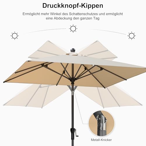 Leichtgängiges Aufspannen, ideal für Garten, Terrassen und Balkon. HINWEIS: Die Schirmständer ist NICHT enthalten.