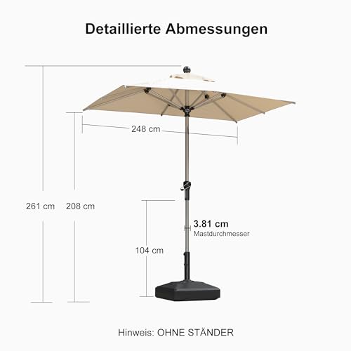 Vielseitiger Einsatzbereich:Champagnerfarbenen Balkonschirm (ohne Ständer) 245 x 245 cm adäquat für Märkte, Gärten, Terrassen, Schwimmbäder, Cafés, Grillplätze und Mix weitere Außenbereiche