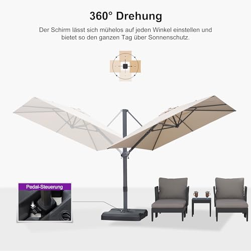 Anpassungsfähigkeit: 360° Rotation, 5 Positionen verstellbar, der Sonnenschirm kann so komfortabel mit der Sonne mitwandern