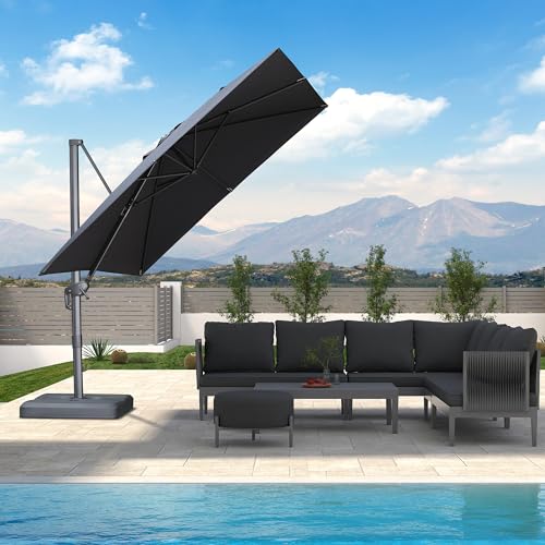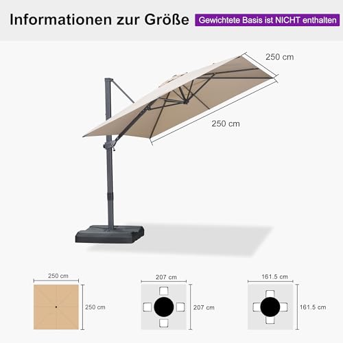 PURPLE LEAF Sonnenschirm 250 x 250 cm Ampelschirm quadratisch mit Kurbel, Gartenschirm neigbar, 360° Rotation, Bespannung Polyester, für Gärten, Cafés, Terrasse, Beige