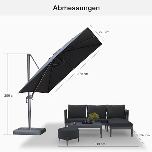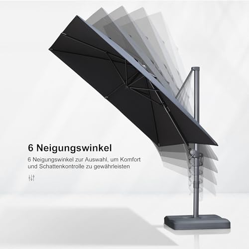 Einfach einzustellen: Der Aluminiumlegierung-Handgriff lässt sich der Sonnenschirm bequem öffnen und folgern. Mit Kurbel und Fußpedal ist die Höhe und 360° Rotation problemlos einzustellen