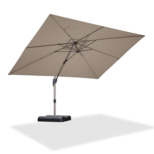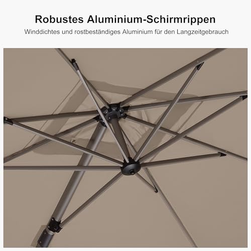 PURPLE LEAF Sonnenschirm 270 x 350 cm Aluminium Ampelschirm Rechteckig 360° Rotation Gartenschirm mit Kurbel Kippbar Groß Wasserabweisend Marktschirm UV 50+ Terrassenschirm für Garten Cafés, Taupe