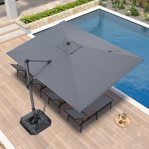 PURPLE LEAF Sonnenschirm 270 x 350 cm, Ampelschirm Groß, Rechteckig Gartenschirm mit Kurbel, Gestell Aluminium, 360° Rotation, UV-beständig, Hellgrau