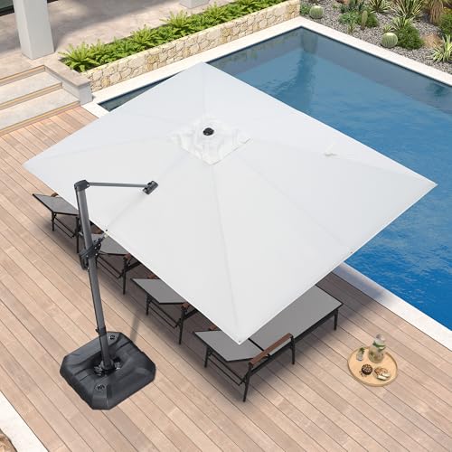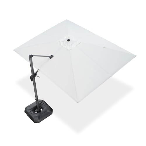 PURPLE LEAF Sonnenschirm 270 x 350 cm, Ampelschirm Groß, Rechteckig Gartenschirm mit Kurbel, Gestell Aluminium, UV-beständig, 360° Rotation, Weiß