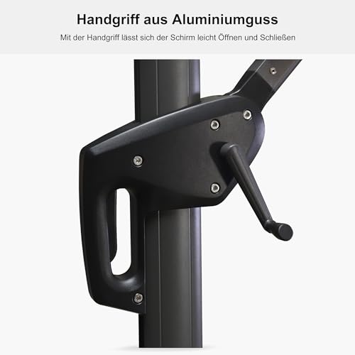 Flexibilität – Mit der Kurbel lässt sich der Schirm leicht Öffnen und Schließen, und 5 Positionen verstellbar