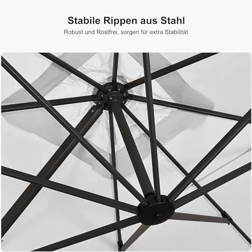 Abmessungen – Die Größe dieses Sonnenschirms beträgt ca. 270 x 350 cm (Fehler ca. 2 cm). In Kombination mit der großen Tuchfläche von ca. 270 x 350 cm haben Sie so immer einen schattigen Platz zur Verfügung