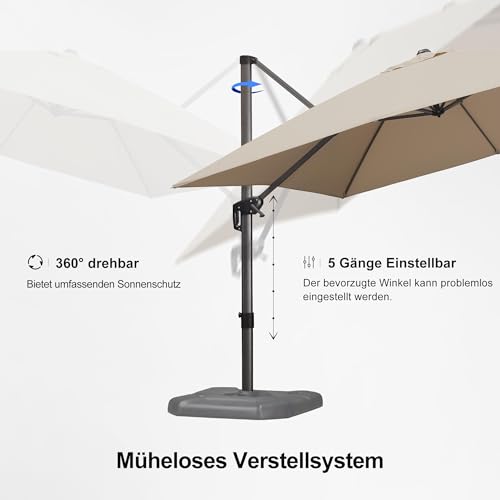 Adaptivität: Mit der Kurbel lässt sich der Ampelschirm leicht Öffnen und Induzieren, und fünf Positionen verstellbar