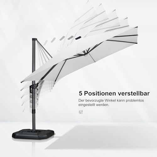 Einfach einzustellen – Der Aluminiumlegierunghandgriff lässt sich der Sonnenschirm bequem öffnen und kombinieren. Mit der Kurbel und Fußpedal ist die Höhe und 360° Rotation problemlos einzustellen