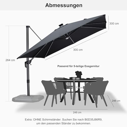 Einfach einzustellen – Der Aluminiumlegierunghandgriff lässt sich der Sonnenschirm bequem öffnen und ableiten. Mit der Kurbel und Fußpedal ist die Höhe und 360° Rotation problemlos einzustellen