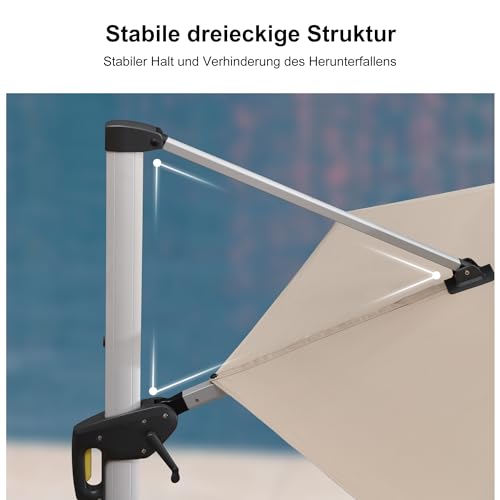 Großer Schattenbereich: Ampelschirm (mit Sonnenschirmständer) 330 cm, das Ihnen eine größere Sonnenschutzfläche bietet,Sonnenschirm mit Doppeldach, verhindert Umkippen bei Wind und gewährleistet Stabilität